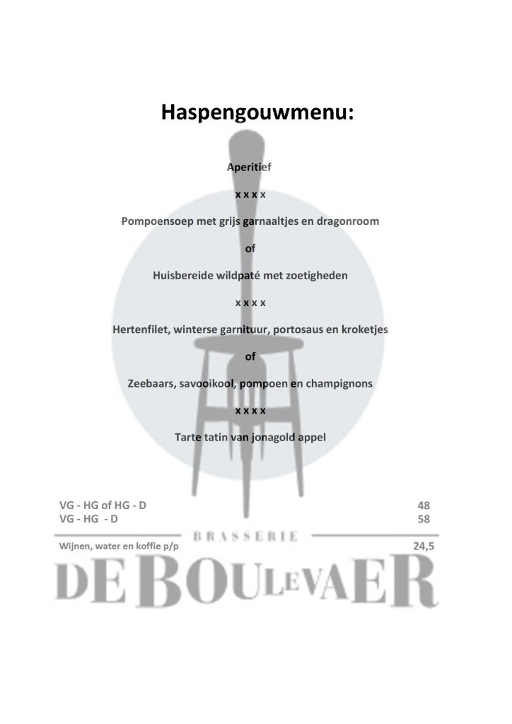 Opgelet: dit MENU verandert naar gelang de seizoenen